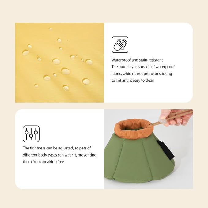 - 【WATERPROOF & DURABLE】Made of lightweight waterproof EVA material, this collar resists spills, food stains, and scratches—wipe clean in seconds for long-term post-surgery use.