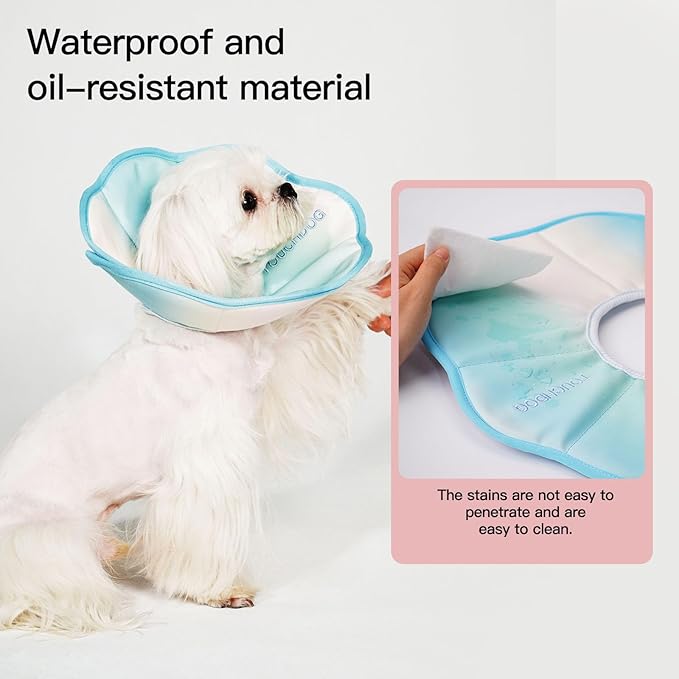 Touchdog Foldable Dog Cone Collar for Cats & Dogs - Adjustable Soft Recovery Collar with Waterproof PU Coating, Lightweight Design, 24.5cm/9.6in Wide Barrier (Blue Gradient Color, S)
