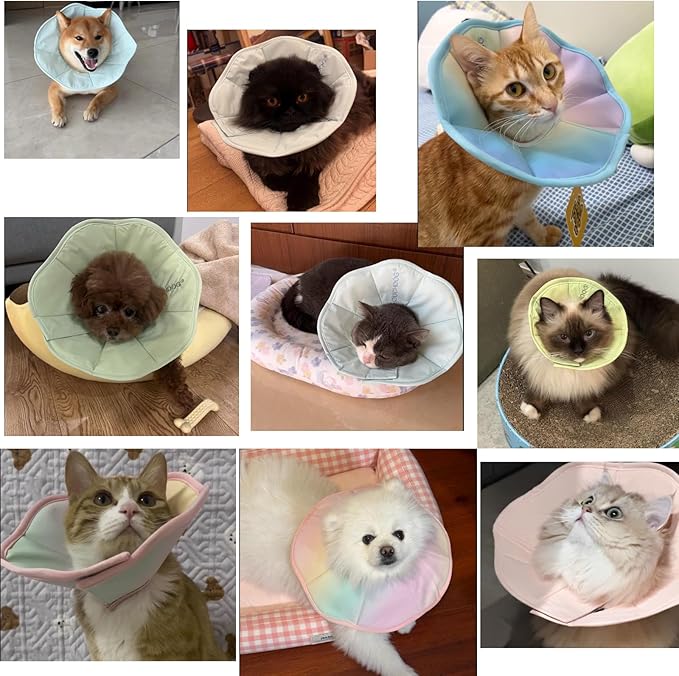 - Lightweight and pressure free design-S size is only 65 grams (about the weight of one egg), with a 95% cotton+5% spandex inner layer that is soft and fits the neck curve, providing unobstructed access to food and water.The shell can be bent freely to adapt to the natural movement posture of pets