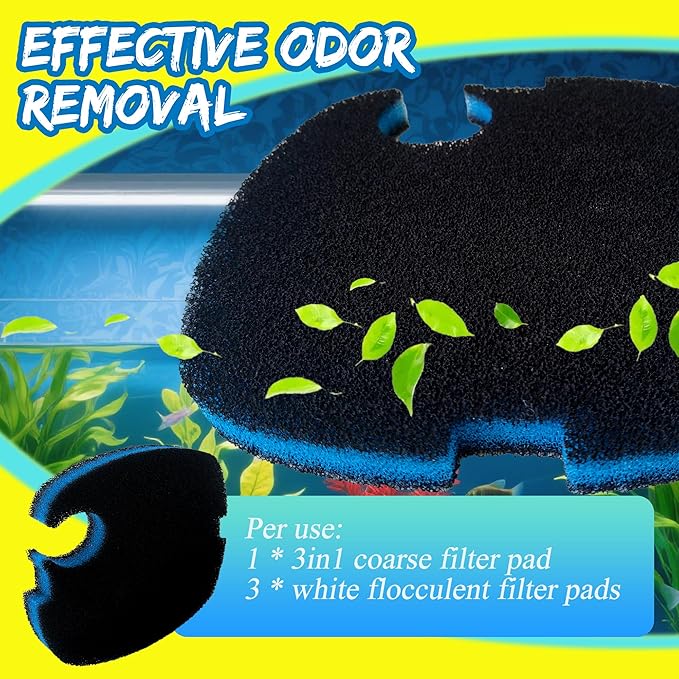 - Upgraded formula: Instead of the traditional blue coarse cartridge, we use a 3-in-1 coarse cartridge with activated carbon, which better filters fine particles and adsorbs odors without restricting the flow of water, providing a healthier environment for your fish
