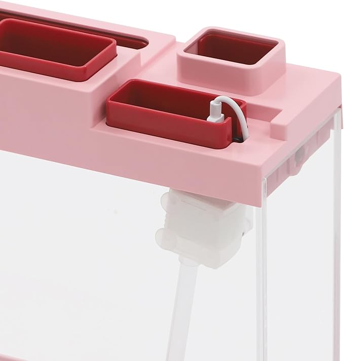 Modern Acrylic Betta Fish Tank Aquarium Kit with LED Lighting and USB Charging Ports 20 Gallon Small Fish Tank for Home Office Decor, Ideal for Living Rooms, bedrooms (Pink)