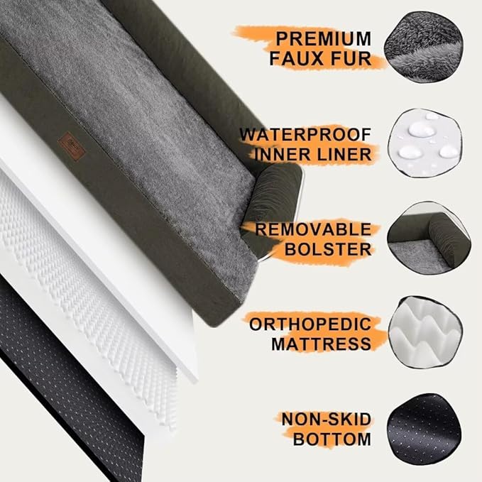 - Orthopedic Support: Mekiy orthopedic dog bed 3.5 inches bolster design can effectively soothes the pet's muscles; offering your pet a variety of cozy positions to snuggle; The cushioned bolster shape is fully filled to support your pet’s head and neck for a more restful sleep