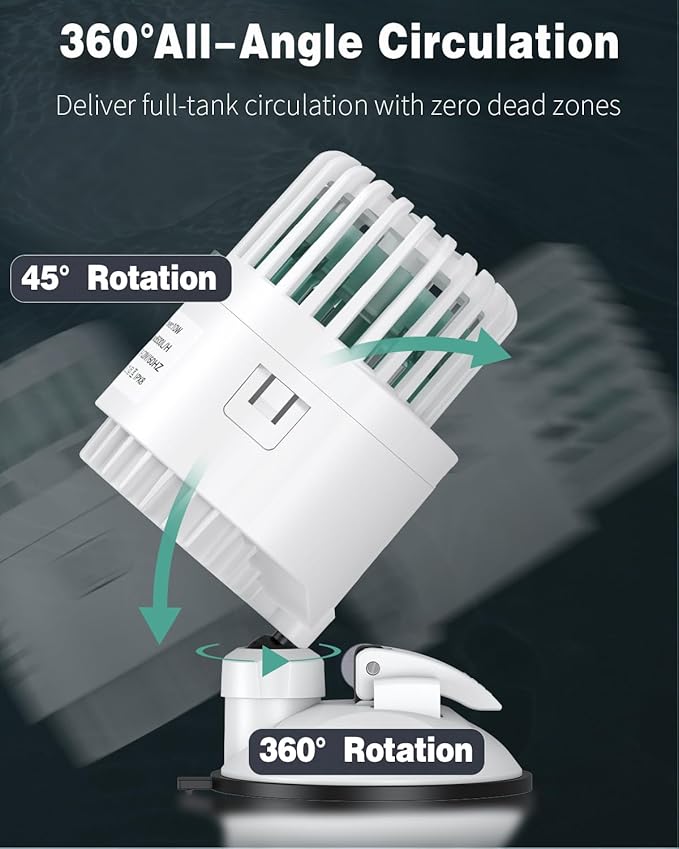 - 360° All-Angle Circulation: This aquarium wave maker rotates 360°on its base to deliver flow from all angles, ensuring full-tank circulation with no stagnant spots. Effectively prevent waste buildup to keep your tank clean