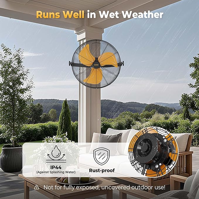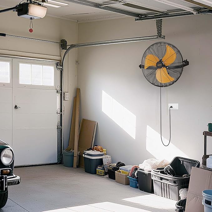 - Triple Safety & Commercial Reliability: A stable wall mount minimizes vibration, while heavy-duty safety latches, safety screw, and overheat protection ensure safety in crowded or complex environments. This fan is ideal for garage, greenhouse, gym, chicken coop, horse barn, shop, or covered outdoor spaces like gazebo, patio, pergola, and porch.