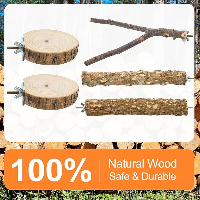 - Easy installation: Installing these bird perches is a breeze. Each perch is equipped with a metal wing nut and built-in bolts, making it easy to secure them in your bird's cage. No additional tools are required for installation, and you can place the perches and platforms anywhere in the cage. The design of these perches mimics the natural trees that birds love to stand on
