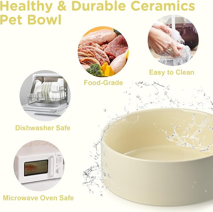 - Lead-Free Ceramic Pet Bowls - 8.3" Ceramic Dog Bowls with 60 OZ Capacity Fired at high temperature with a food‑grade glaze that contains zero lead or cadmium, these non‑porous bowls help keep meals tasting fresh, rinse clean in seconds, and both MICROWAVE SAFE and DISHWASHER SAFE