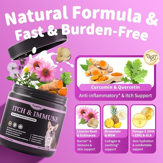 - Seasonal & Immune Support for Dogs: We’ve combined nature’s finest ingredients for your dog. Turmeric and quercetin help soothe itchy skin, while licorice root and echinacea provide natural immune support