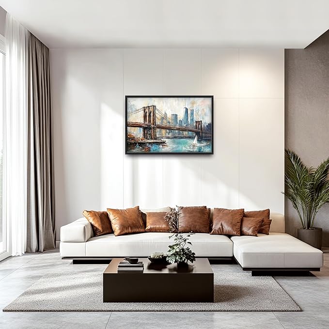 Extra Large Framed Brooklyn Bridge Wall Art,New York City Wall Decor,Abstract Skyline Cityscape Pictures for Living Room,Canvas Print Painting Modern Artwork Bedroom Office Bathroom 36L x24W
