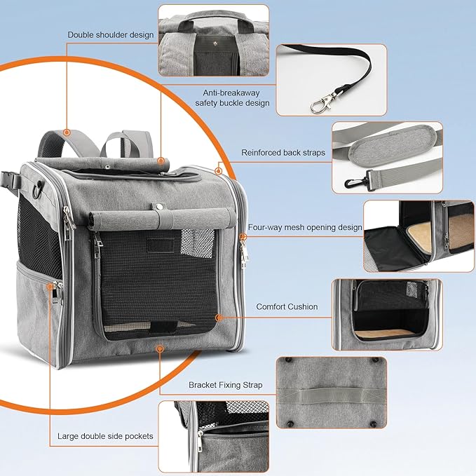 - Breathable Design: The bicycle dog basket features a large mesh opening on top, allowing your furry friend to enjoy the ride. With openings from four directions, it's easy and safe to place or remove your dog. The four mesh ventilation windows ensure your pet stays cool and comfortable during the journey.