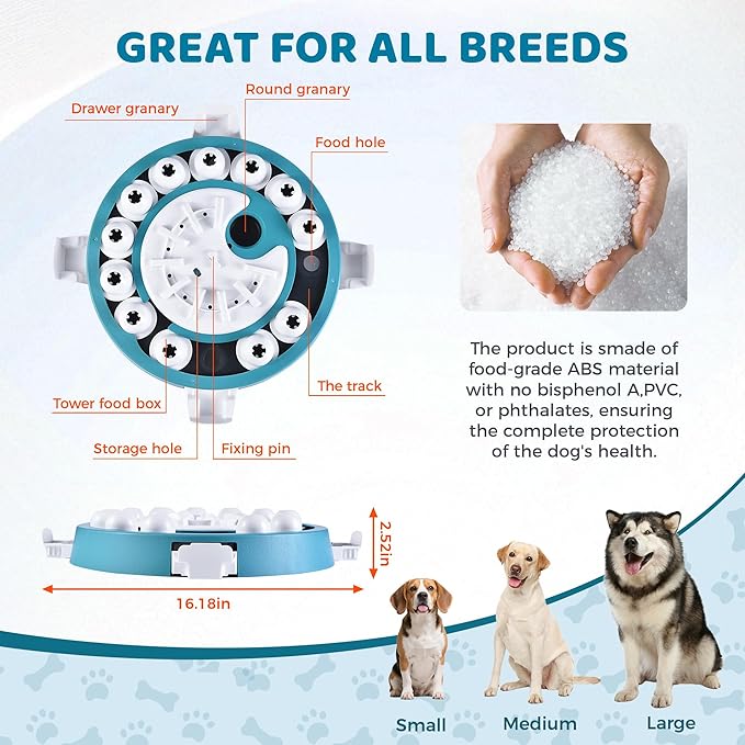 - Adjustable Challenges Levels - This puzzle toy can support multiple levels, from very easy to difficult, so you don’t have to buy multiple puzzle toys. This puzzle can alongside your dog's understanding, gradually increasing the challenge.