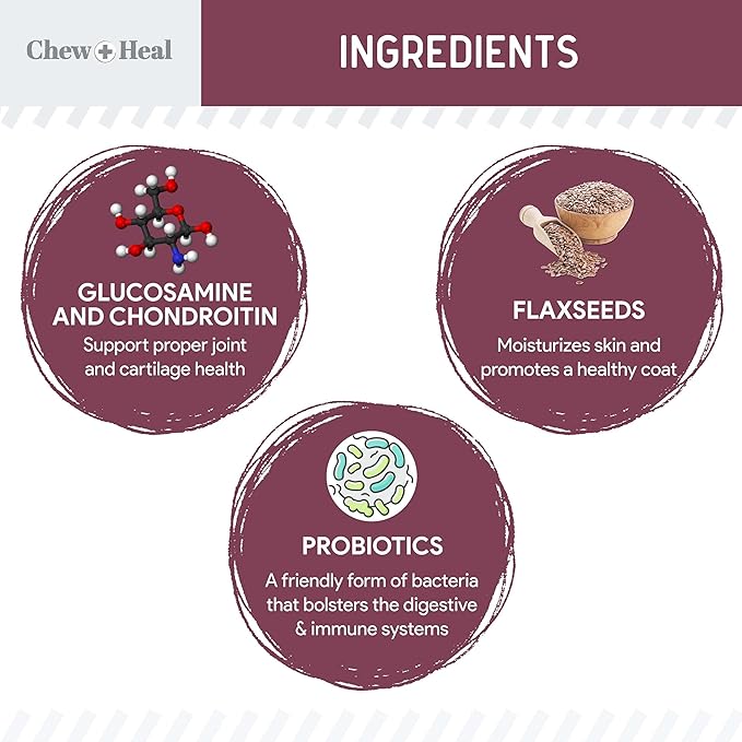 - Chew + Heal's senior dog multivitamin is a chewable supplement pack with vitamins, minerals, and probiotics to help your dog feel his best!