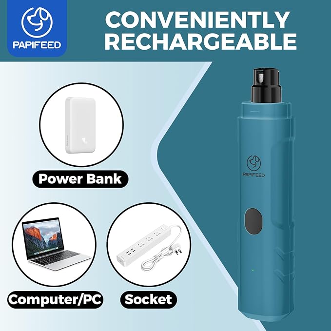 - 🐾【TYPE-C CHARGING, MORE EFFICIENT POLISHING】: "The Type-C interface is compatible with mobile phone chargers, so you can charge it whenever you want, and say goodbye to the cumbersome replacement of traditional batteries. Using the PAPIFEED dog nail grinder, you can experience the convenience brought by continuous operation time and ultra-long standby time, providing an uninterrupted beauty process and flexible nail care."