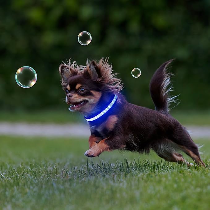 - 【Brightest LED Dog Collar】Super bright for small dog night walking, Flashseen light up dog collars make your small dog highly visible and keep it glow in the dark—no more worries about the dog's safety.