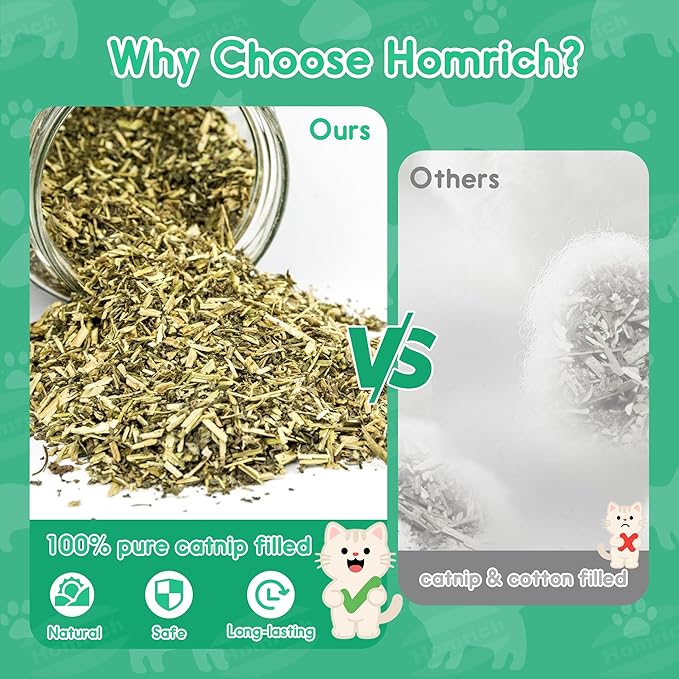 - 【100% Premium Organic Catnip Filling】Catnip is a favorite natural herb among most cats. Unlike products mixed with cotton or fillers, our cat toys are filled with 100% premium and effective catnip. This pure and potent catnip creates stimulating toys that will keep your feline friend happy and active.