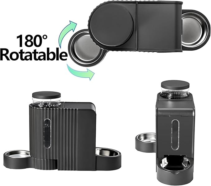 - 2 in1 New Design Automatic Cat Feeder and Water:Gravity automatic cat and dog food feeder and water dispenser set with stainless steel bowl,The bottom of the cat feeder has been upgraded with a movable stainless steel bowl to keep food fresher and easy to clean, not easily deformed, not rusty,sturdy and sanitary. Our automatic cat feeder and water system combines a gravity cat feeder and water dispenser, offering busy pet owners an efficient way to ensure their furry friends have consistent access to food and hydration