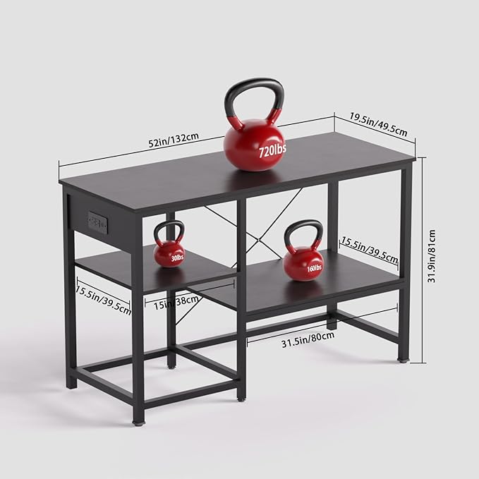 50-75 Gallon Fish Tank Stand with Power Outlet & LED Light, Metal Aquarium Stand with 3 Tier Adjustable Storage Shelves, Tank Stand for Reptile Tank, Turtle Tank, 52" L*19.5" W, Black