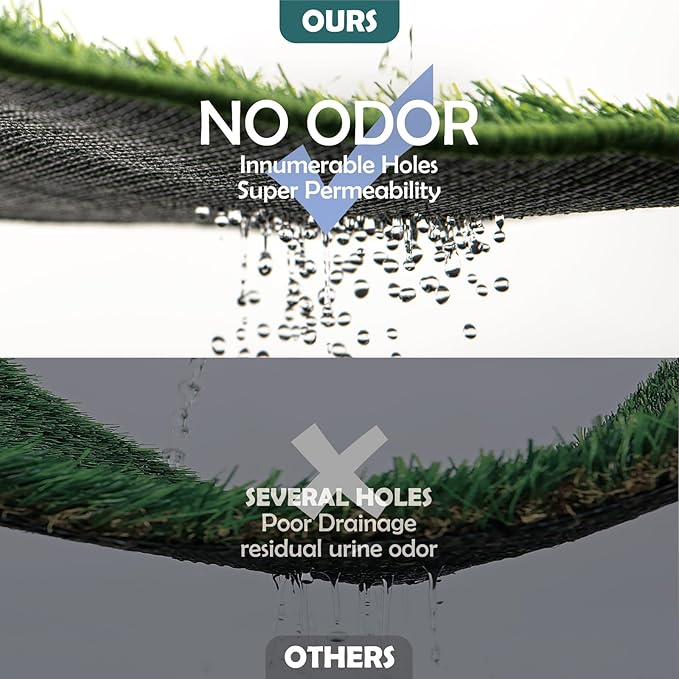 - 2PCS Odor-Free & Instant-Penetration Artificial Grass : Experience next-generation artificial grass for dogs potty engineered with knit-melt fibers (no rubber!) featuring countless built-in permeable holes. Urine flows instantly through the dog potty grass into the reusable dog pee pad and maintaining a fresh-smelling space.