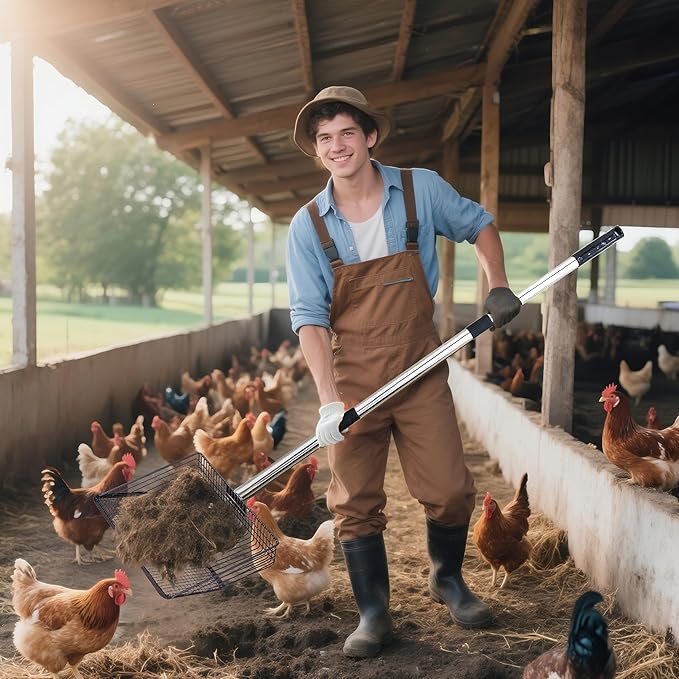 Chicken Poop Scooper - 54-Inch Long Handle Chicken Coop Cleaner, 10-Inch Wide Metal Waste Scooper for Poultry, Rabbit Hutch & Pet Cages