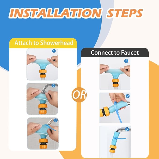 - TOOL-FREE QUICK INSTALLATION: Secure to faucets/shower heads with included nylon zip-tie rings (use 2 for extra stability). Removes in seconds after use – no permanent changes to your fixtures