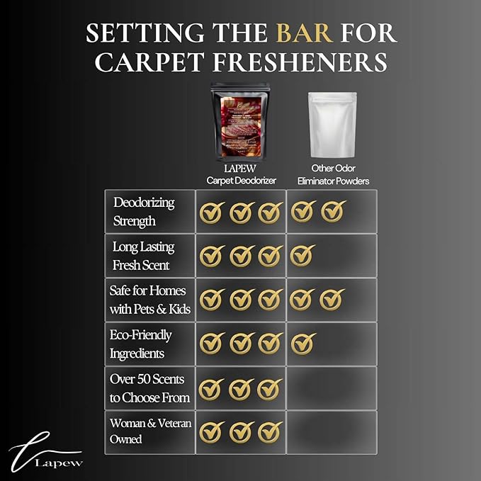 - Powerful Odor Eliminator for Strong Odors: Say goodbye to stubborn smells with the Lapew Mahogany Apple Carpet Freshener Powder, specially formulated to tackle everyday room odors.