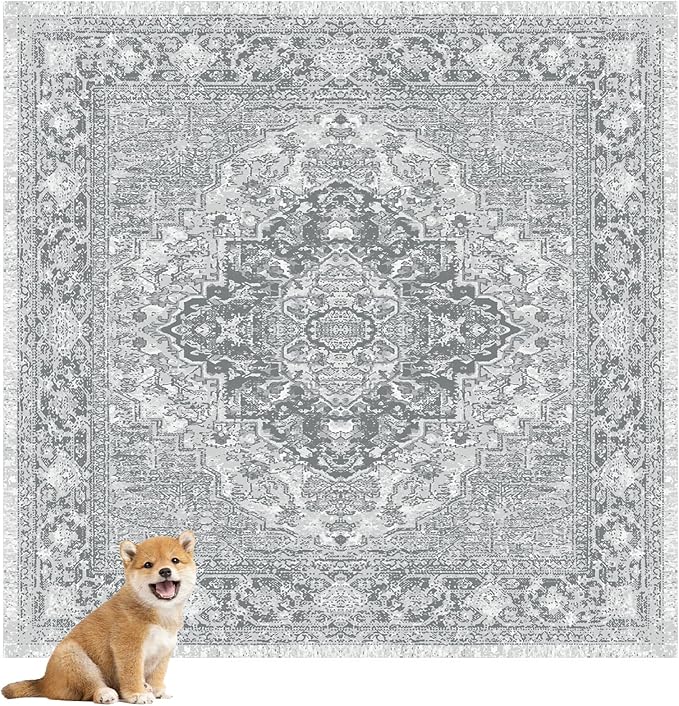 nunubaby Washable Pee Pads for Dogs, Stylish, Non-Slip and Leak-Proof Pee Pads. Reusable Potty Pads for Dogs for Crates and Floors.(Gray/Geo, 72" x72")