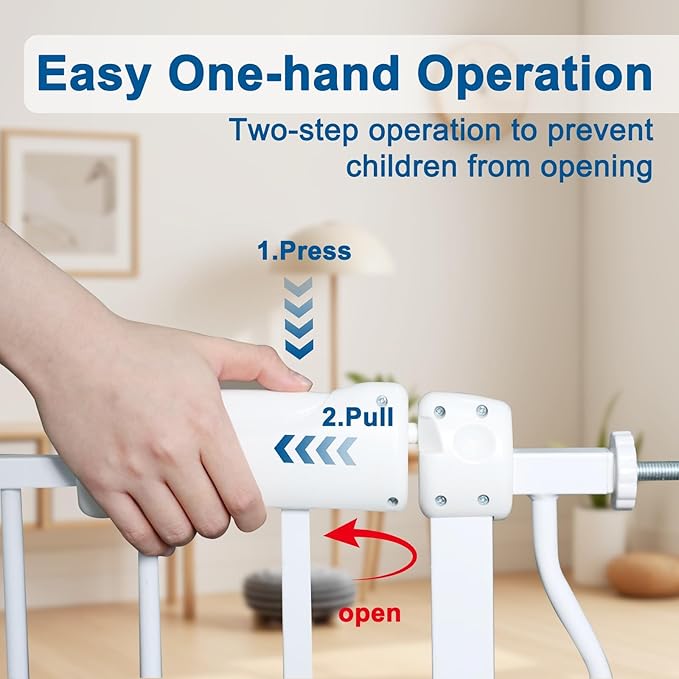- 【Safe for Baby】Your curious crawlers will be "blocked" by the safety extra wide baby gate because we design the double-lock safety release which makes it difficult for toddlers to open the gate ,but adults can operate with one hand and pass quickly.