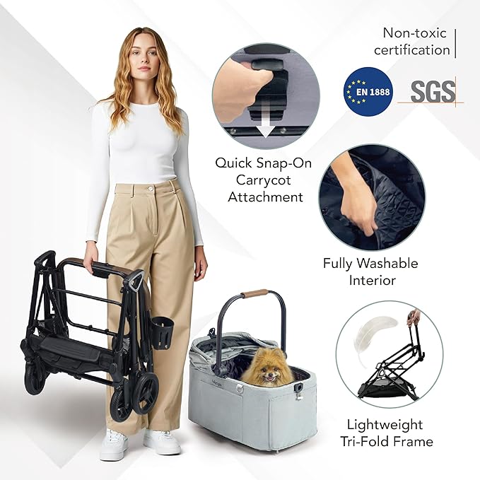- Bulky Gear Slows You Down? This lightweight pet stroller 3 in 1 features a quick-folding, detachable pet carrier, and collapses compactly—even with the cabin attached—for easy storage and travel.