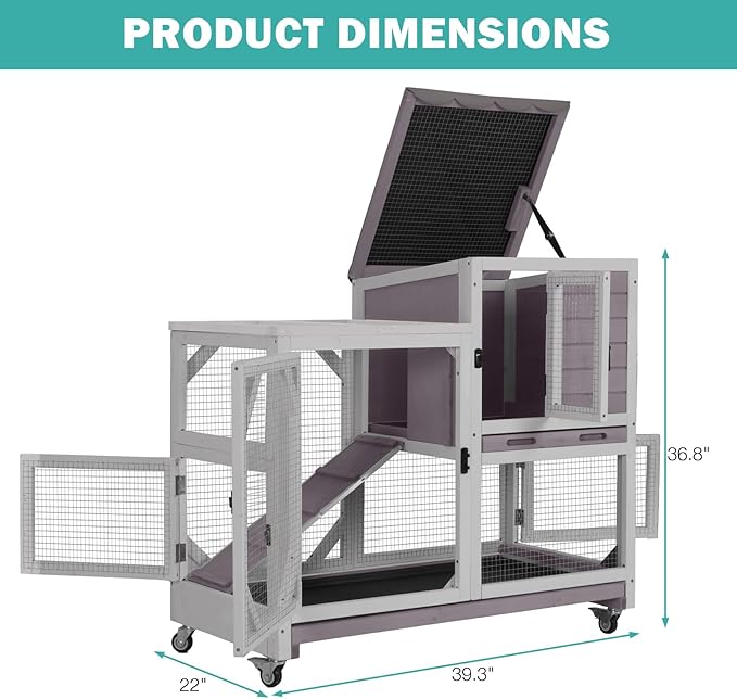 - Durable & Safe Shelter: Crafted with natural weather-resistant cedar wood, this 2-story rabbit hutch ensures long-lasting durability for your pets. The ventilation wire mesh on the sides promotes airflow, keeping your bunnies healthy and comfortable indoors