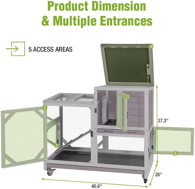 - Indoor and Outdoor Use: Whether placed indoors or outdoors, this rabbit hutch can adapt perfectly. Its sturdy structure and multi-functional design make it an ideal habitat for your pets, providing a safe and comfortable home.