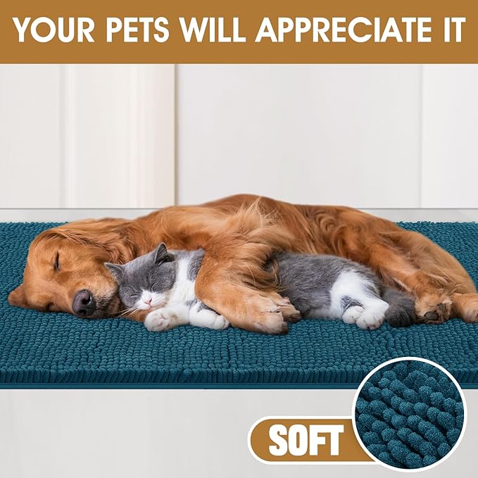 IM HOME Extra Large 60" x 36" Teal Blue Dog Door Mats for Muddy Paws, Chenille Absorbent Dog Mat, Non Slip Heavy Mud Mat for Dogs, Soft Pet Bed Mat for Entryway, Mud Paws, Inside Floor