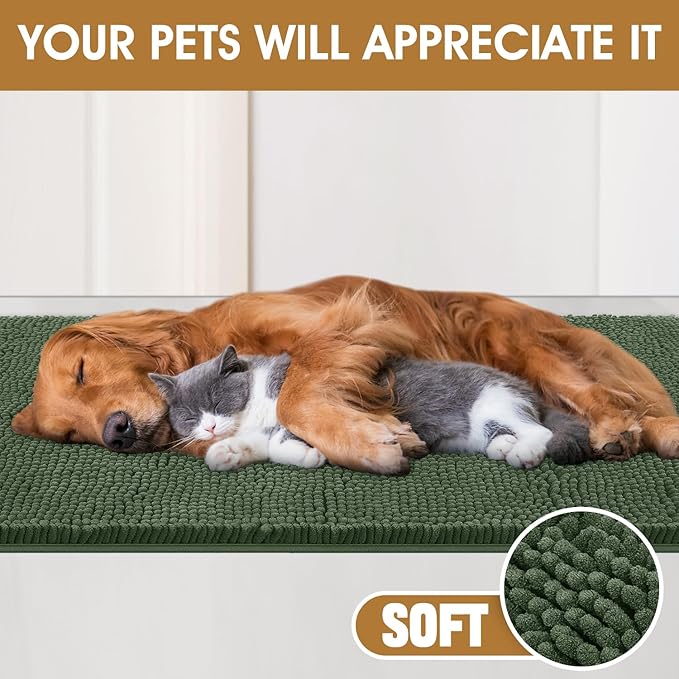 IM HOME 48" x 38" Olive Dog Door Mats for Muddy Paws, Chenille Absorbent Dog Mat, Non Slip Heavy Mud Mat for Dogs, Soft Pet Bed Mat for Entryway, Mud Paws, Inside Floor