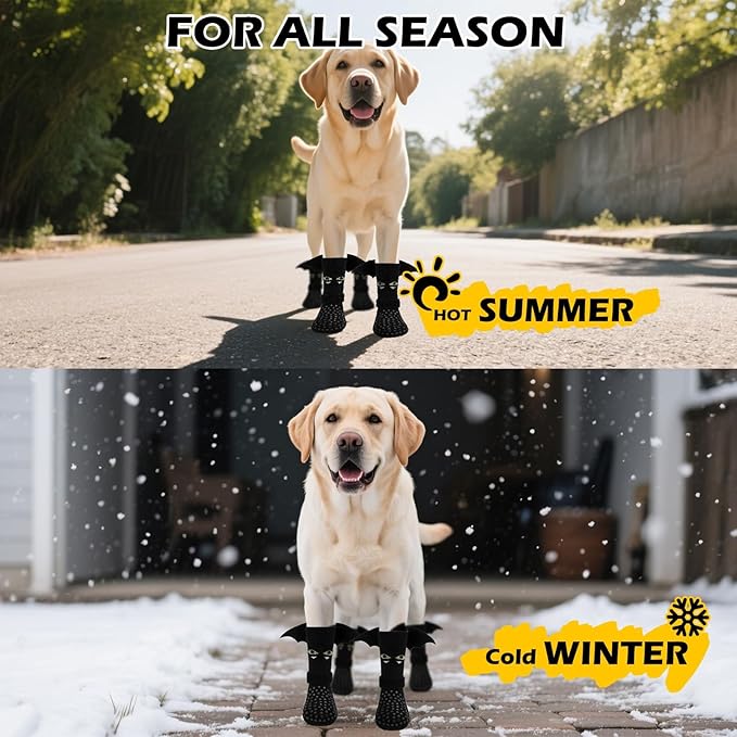 EXPAWLORER Halloween Anti Slip Dog Socks to Prevent Licking Paws, Boots & Paw Protectors with Grippers,Doggie Booties for Hardwood Floors for Small Medium Large Senior Dogs Costume Black Devil Wings S