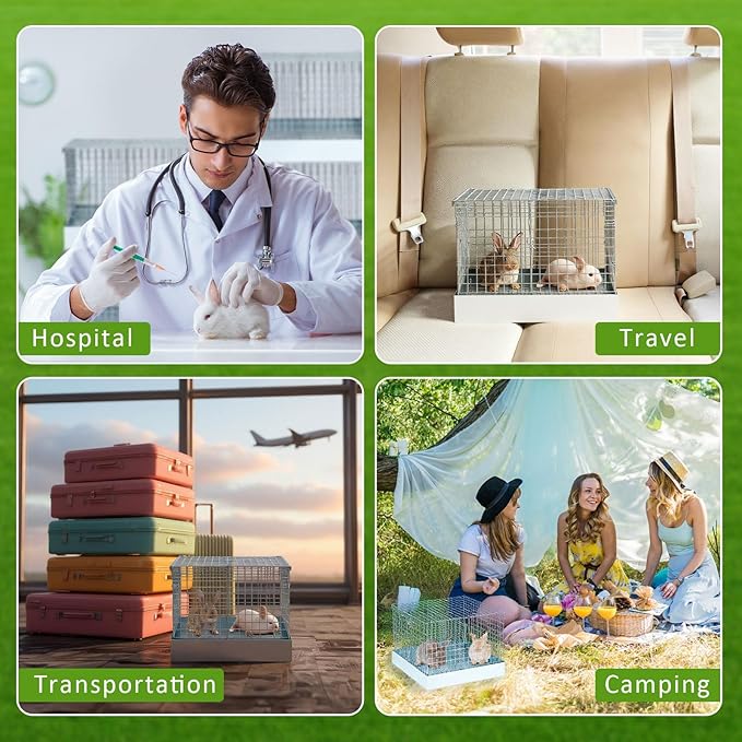 - Easy Transport with Carry Handles: designed for both short trips and extended outings, this bunny transport cage comes with sturdy handles on both sides for effortless carrying. Remove the divider to create a larger shared space when transporting more than one rabbit at a time. Ideal for travel, vet visits, outdoor events, or even as a temporary indoor pen