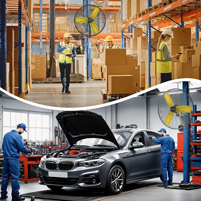 - Heavy-Duty Construction: Built with robust materials like reinforced metal, ensuring durability for industrial and commercial use for workshops, warehouses, garages, and other industrial settings. This is an industrial fan, the noise is slightly louder than home fans, but less noisy than most of the same size industrial fans