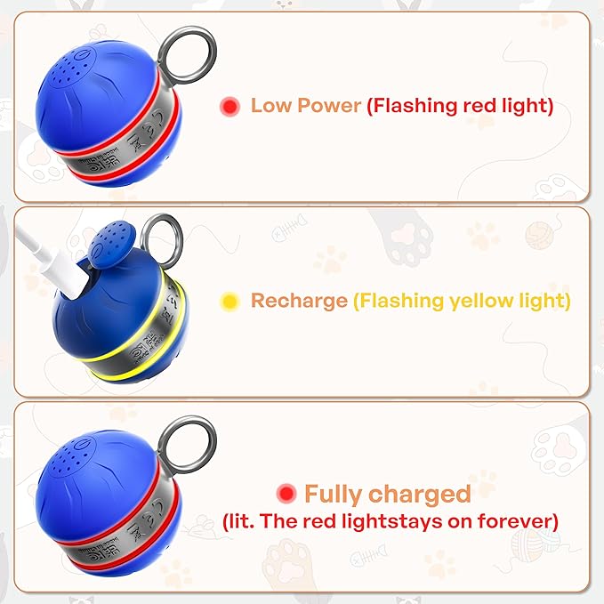 - USB-C Fast Charging & Long-Lasting: IMPORTANCE TIPS OF CHARGING - 5V/1A Adapter Only.This cat ball toy rechargeable via modern Type-C port (cable included); 30 minutes charge lasts for 2+ hours of play—eco-friendly and cost-effective vs. battery-operated toys