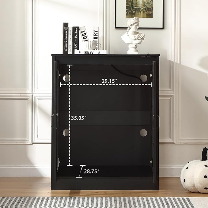 Cat Litter Robot Enclosure with Glass Cat-Observant Doors,Litter Robot Cabinet with Reversible and Optional Entry(Left or Right),Cozy LED for Cats,Power Outlet for More Choice, Black