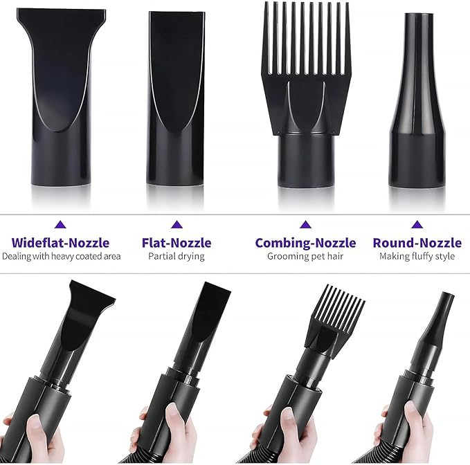 - ① High Power & Efficiency:this professional-grade hair dryer for Pets delivers 2400W / 75M/S Power, cutting drying time by over 60%.