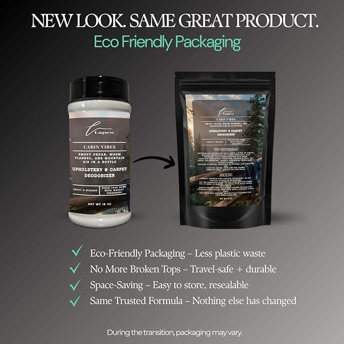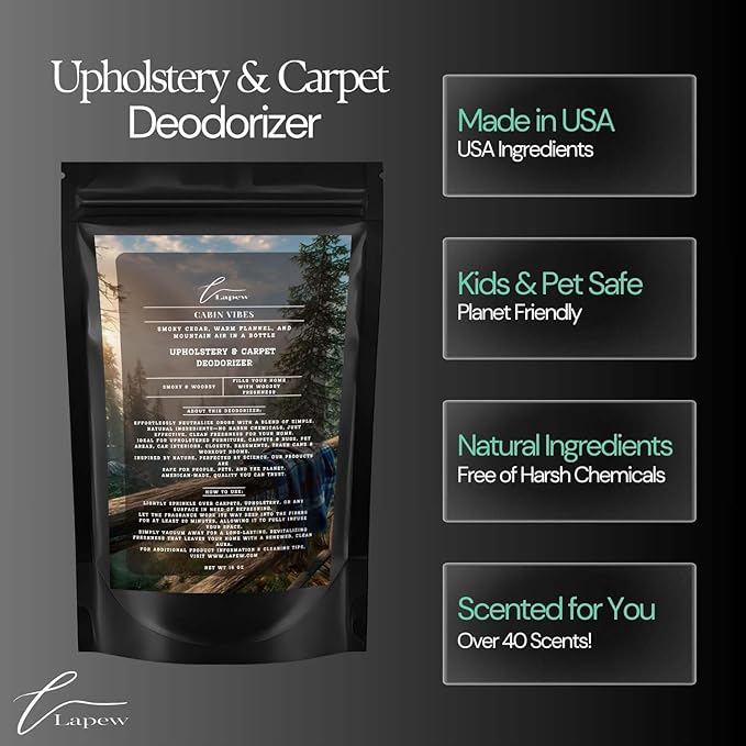 Cabin Vibes Carpet Freshener Powder: Powerful Odor Eliminator for Home, Upholstery Deodorizer, Carpet Deodorizer, Pet Urine, Cat Litter Box - Autumn Woods Fragrance