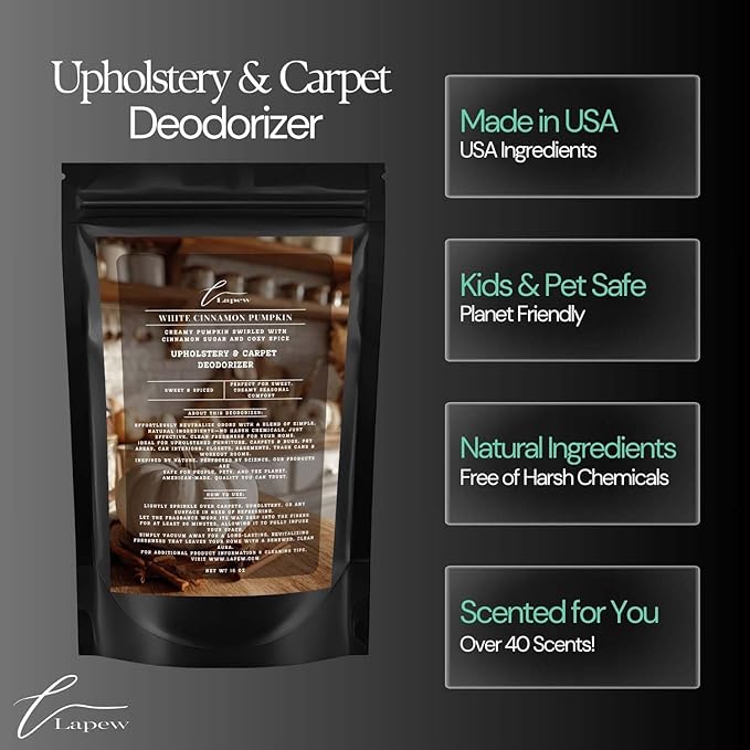 - Powerful Odor Eliminator for Strong Odors: Say goodbye to stubborn smells with the Lapew White Cinnamon Pumpkin Carpet Freshener Powder, specially formulated to tackle everyday room odors.