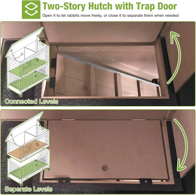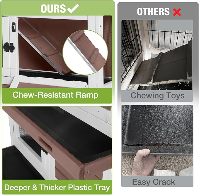 - Easy to Move: Four sturdy wheels let you roll the rabbit hutch smoothly for cleaning or repositioning