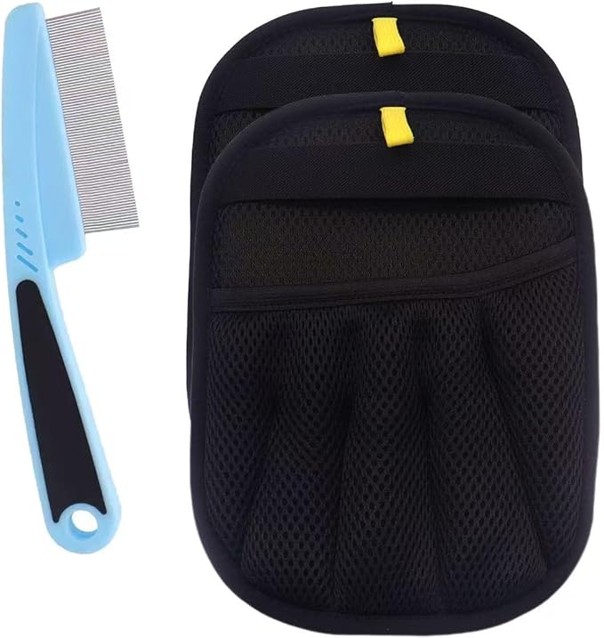 Electrostatic Pet Hair Remover Glove, Reusable Pet Hair Removal Glove for Dog & Cat Grooming, Double Sided Static Pet Hair Fur Remover Gloves for Clothing, Couch, Car Seat (2 gloves+1 flea comb)