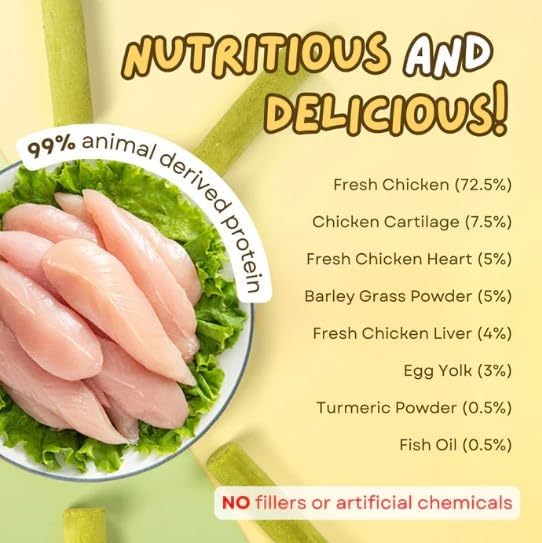 - 【Digestive & Nutritional Benefits】Packed with protein from real chicken and enriched with cat grass, this teething stick supports a balanced diet, keeps the digestive system on track, and helps reduce vet visits—giving you more joyful playtime with your furry friend