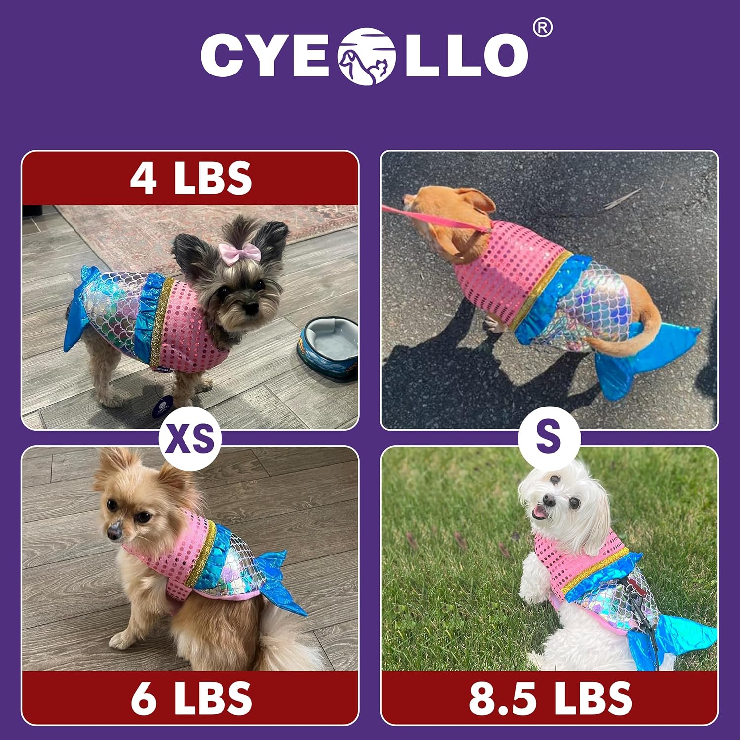 - About Size: Dog mermaid costume for small medium and large sized dogs. Different breeds of dogs also have unique body shapes, so it's important to measure your dog's chest and back length accurately before purchasing